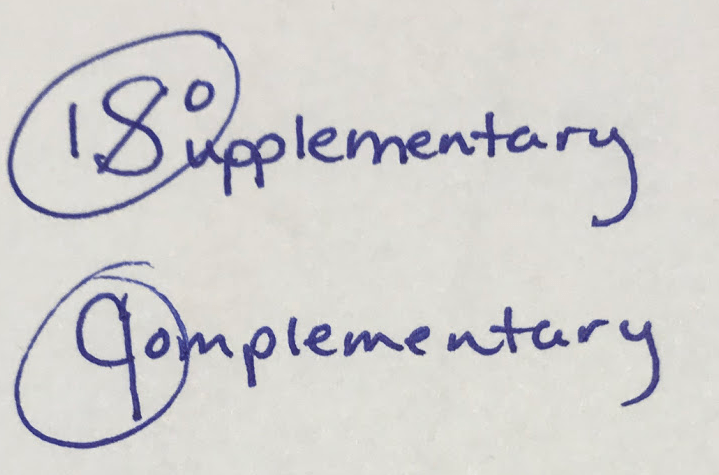 Another geometric concept that students usually know before entering my class is supplementary and complementary angles. If they struggle on knowing the difference, I use this little trick seen on the left. After I show the students this visual, they never forget the difference!