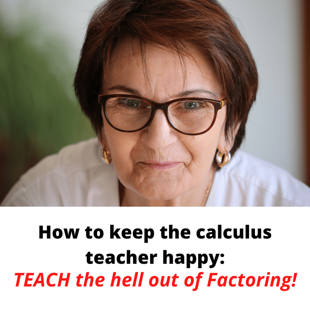It’s the truth! Factoring is a major topic and somehow, we have to make sure students can do it. Factoring is needed for all math classes after Algebra and for all college entrance exams (SAT, PSAT and ACT) and placement exams (ACCUPLACER and TSI). Algebra teachers have enough on their plate without this pressure, but it’s our job to teach it and hopefully it will be reinforced in future math classes.