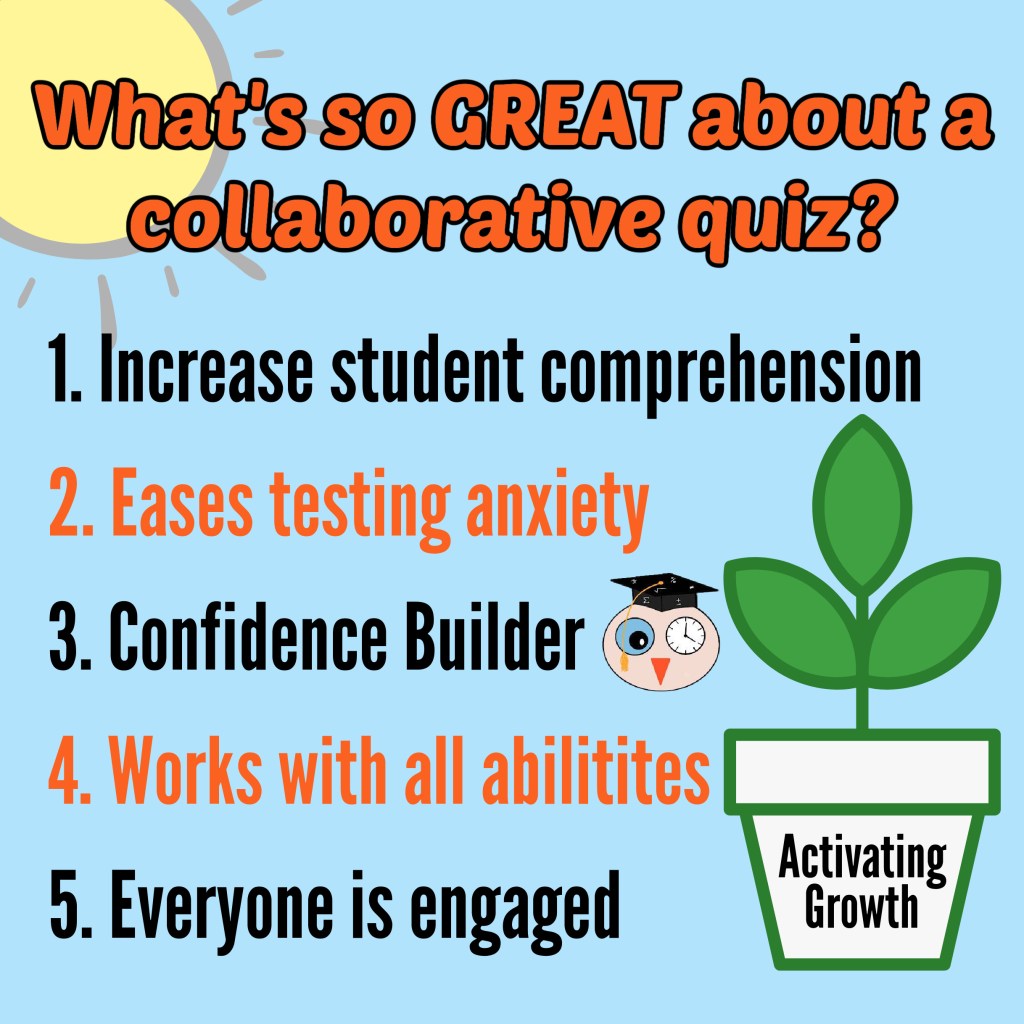 I love small group quizzes for so many reasons! Its a win win situation. I cannot say enough about this type of strategy. I’ve done group quizzes for many years, but with the help of my peers, I’ve figured out the way that works best for me. I’ve also discovered that it will evolve the more you do it. You’ll get an idea to try something new or you’ll stop doing something else that’s not working the way you want.